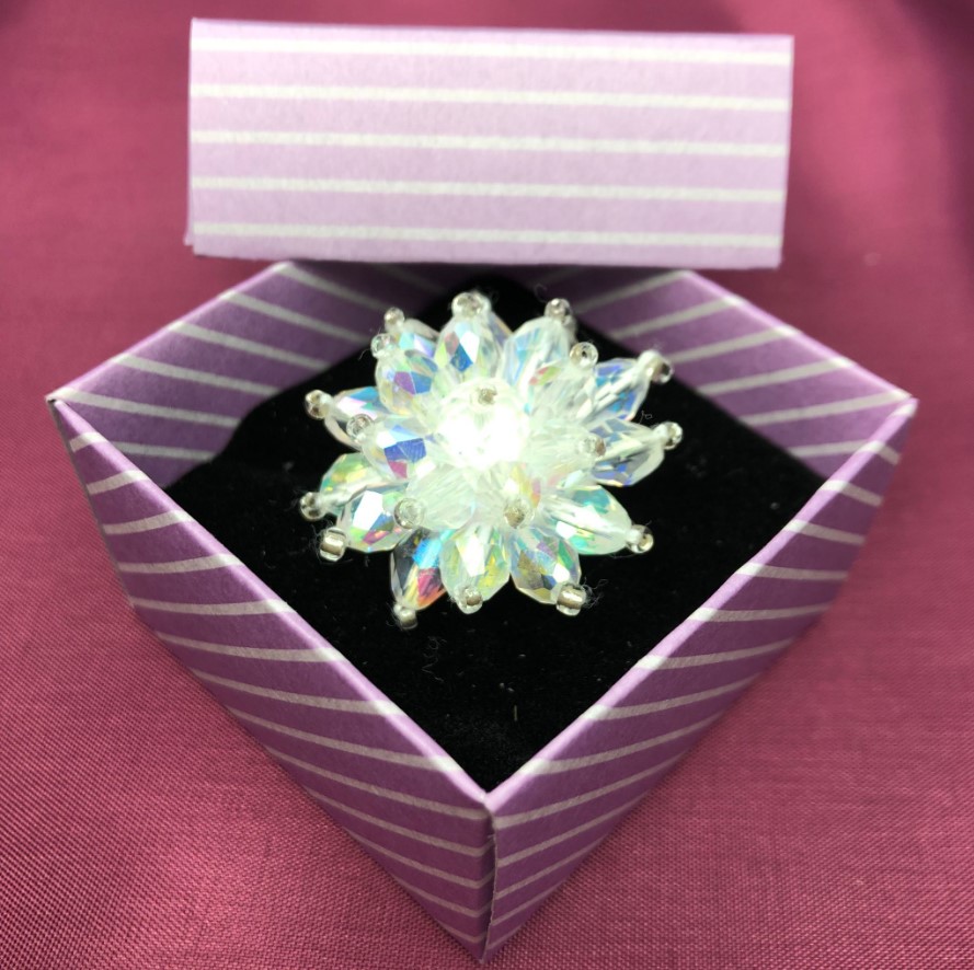 Süslü Düğme Kapağı, Tak Çıkar Taşlı Broş - Hediyelik kutusundadır.