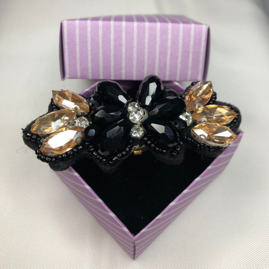 Süslü Düğme Kapağı, Tak Çıkar Taşlı Broş - Hediyelik kutusundadır.