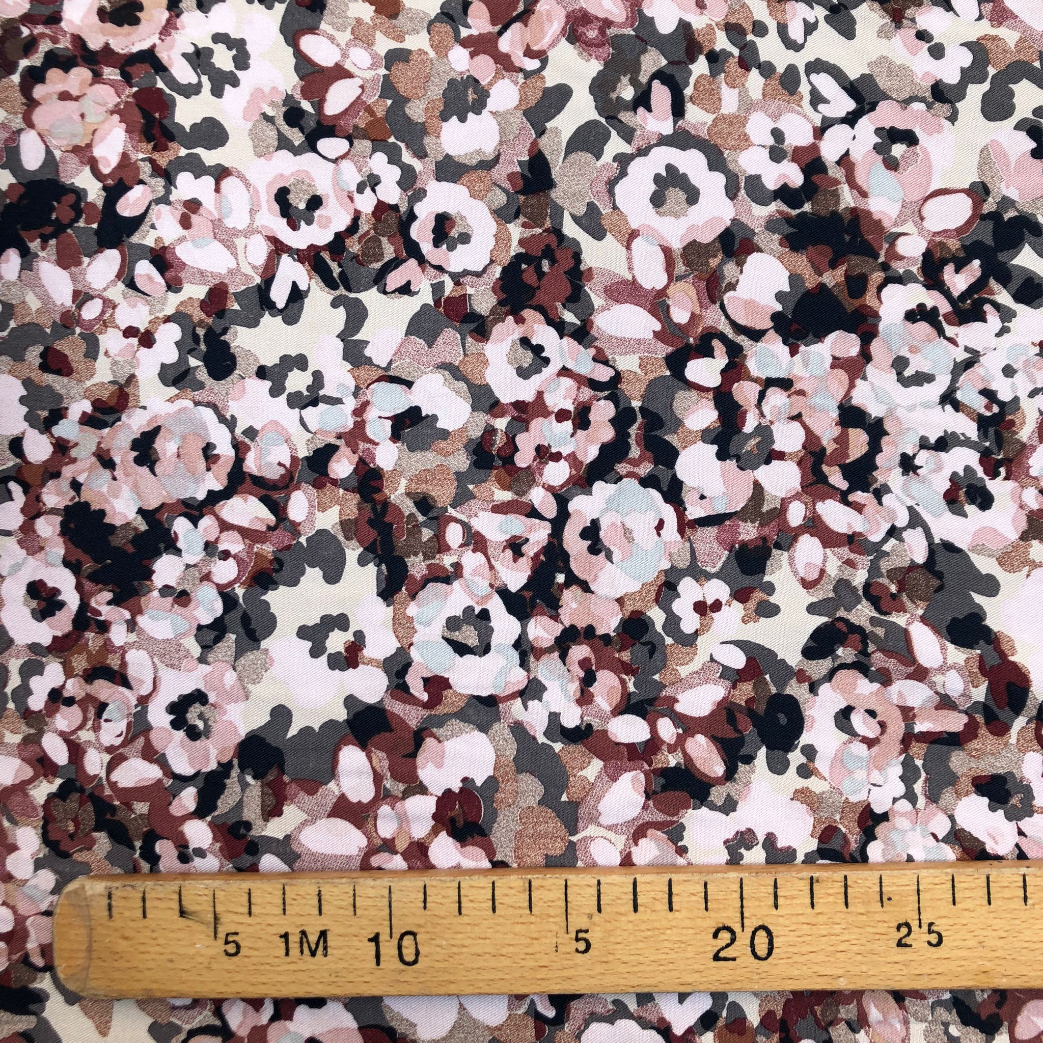 Viskon Kumaş, Elbiselik, Doğal 145cm Çift En - Pudra Renk Çiçekler