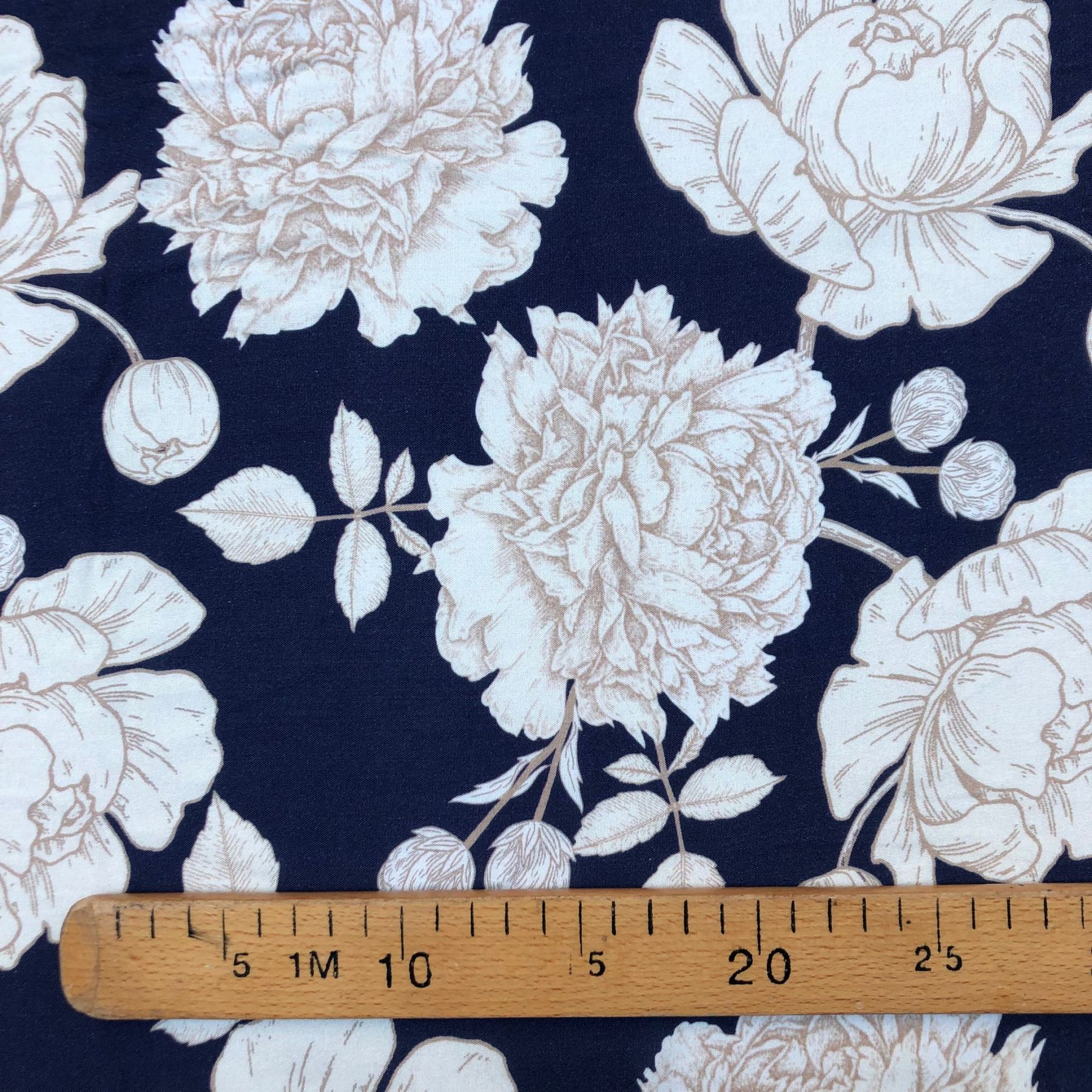 Viskon Kumaş, Elbiselik, Doğal 145cm Çift En - Büyük Beyaz Çiçekler