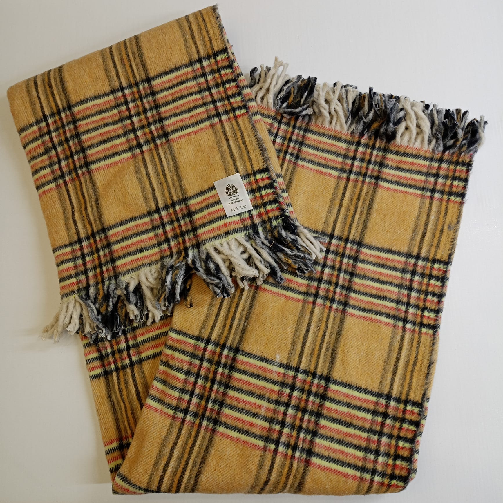 Woolmark Çift Kişilik Saf Yün Battaniye,Hardal Sarısı, Battal boy
